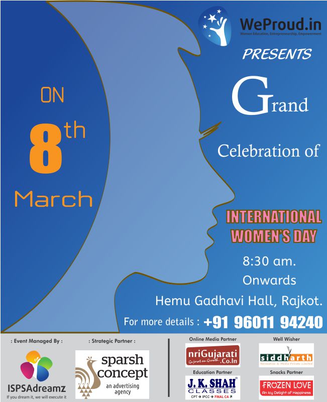 ISPSADreamz is a famous organization for all types of event management and advertising. The women’s day celebration takes place every year but this year will be a grand celebration in Rajkot by weproud.in.